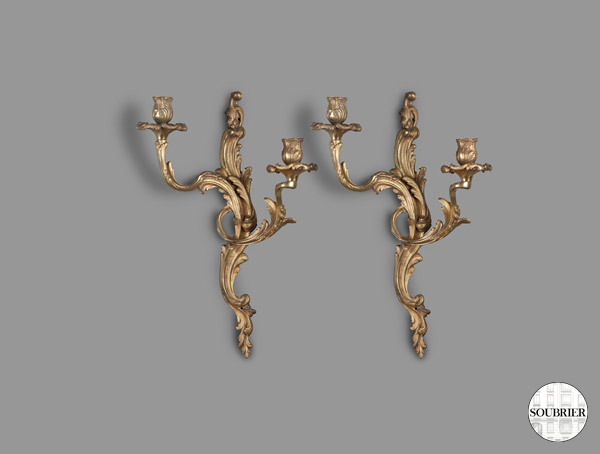 Two lights gilt bronze two sconces and decorated rococo , Louis XV, XVIII .
