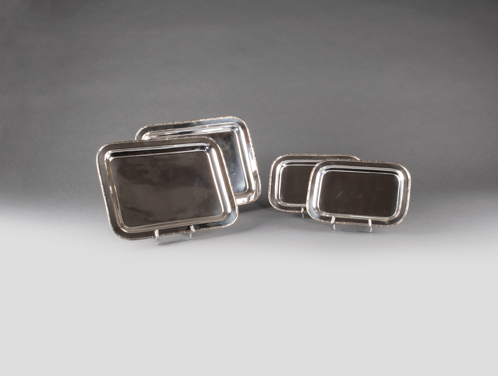 Set of four silvered trays, two small ones and two big one.