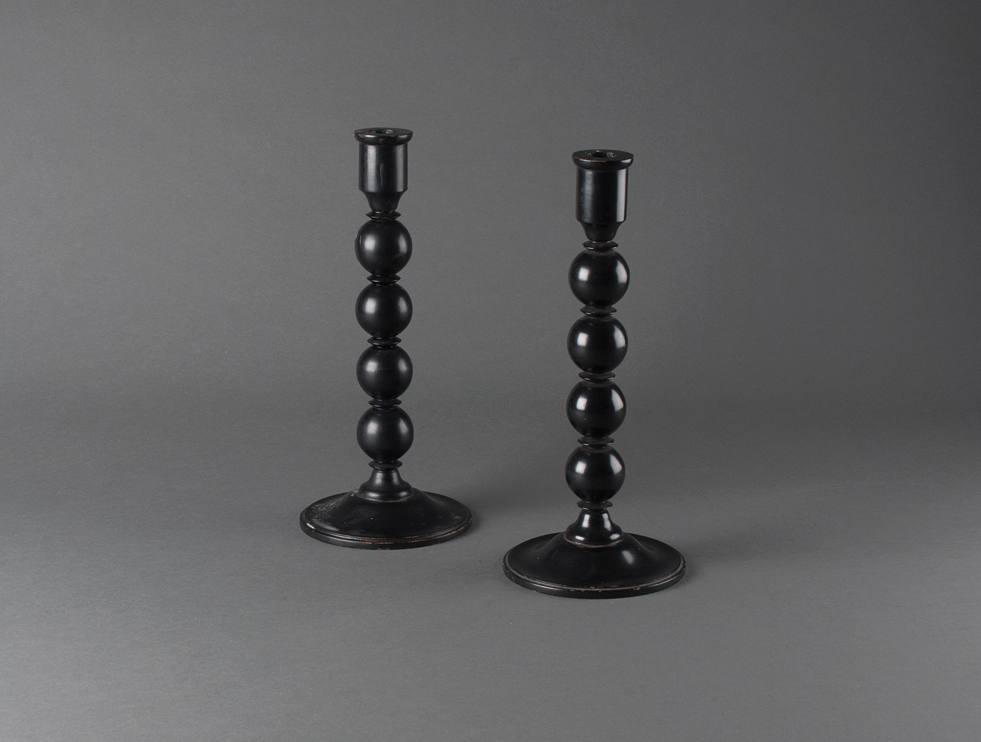 Wooden candle holder with black balls
