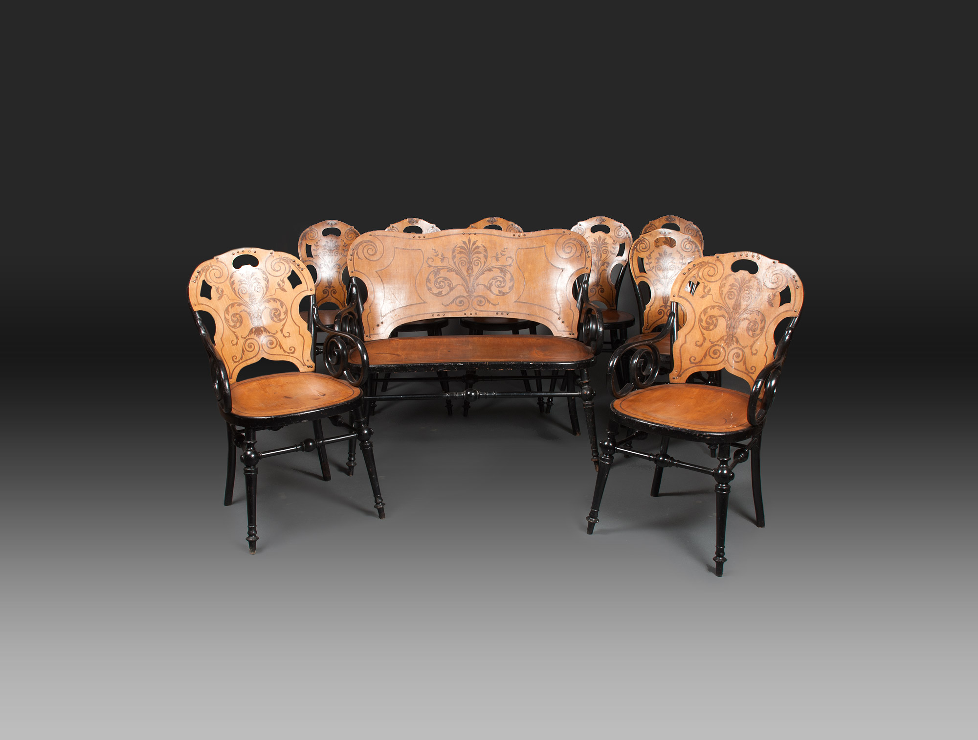 6 Carved wood Thonet chairs