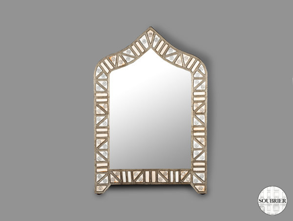 Moroccan mirror with a frame of bone and metal, peak shape at the top, nineteenth - Morocco .