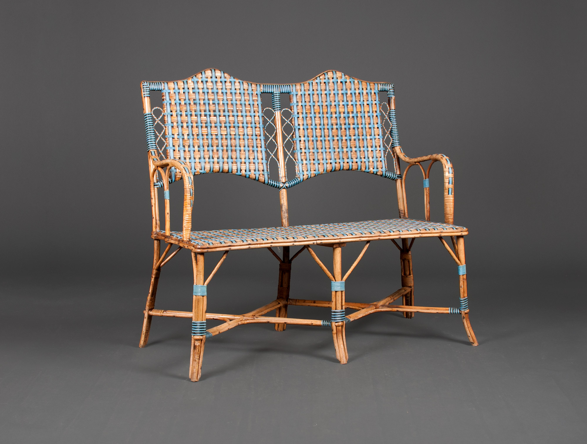 Blue rattan outdoor living: 1 sofa, 2 armchairs, 2 chairs, 1 table garden & 2 planters.