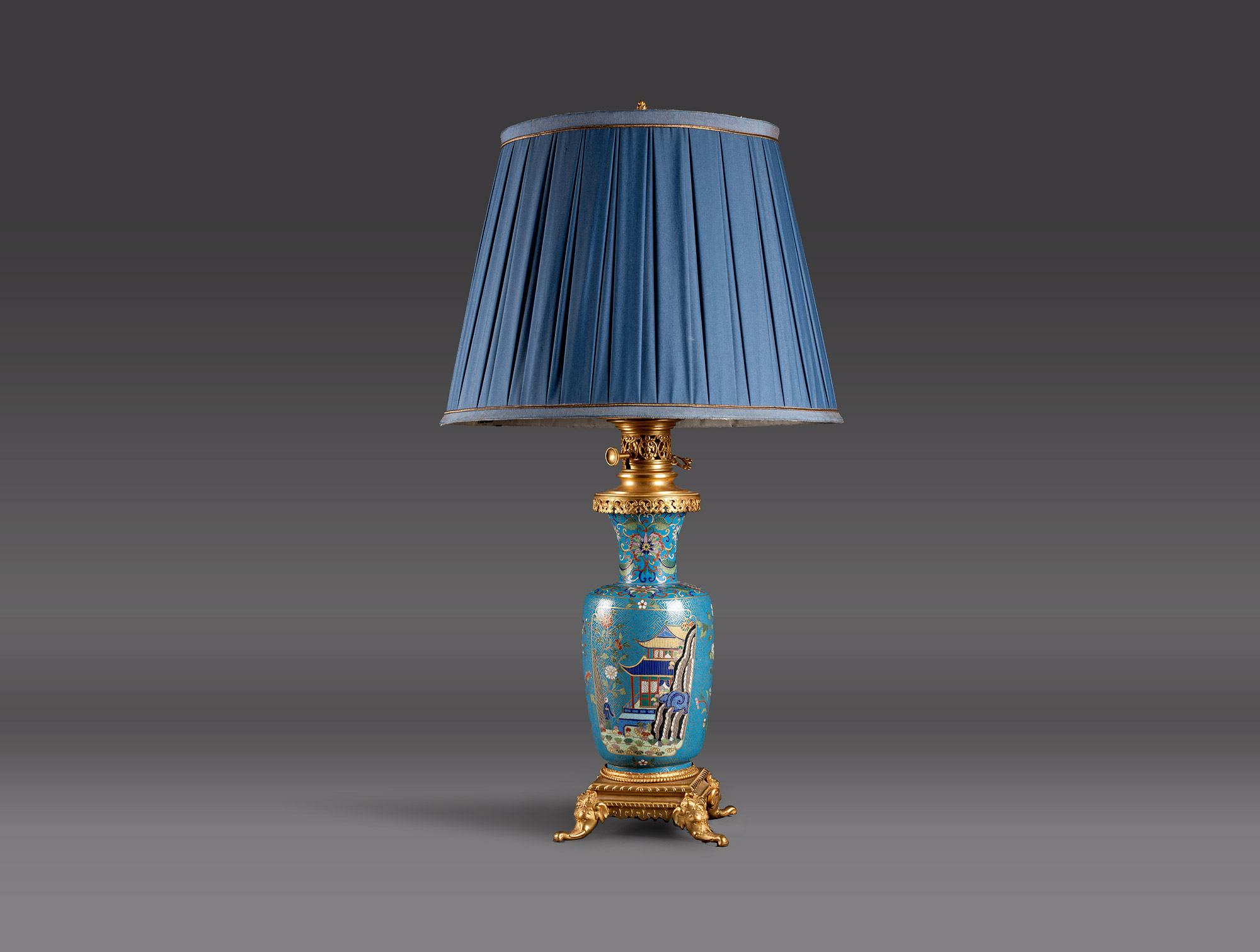 Chinese lamp with a blue silo mount bronze elephant heads and a blue pleated shades blue, nineteenth - China.