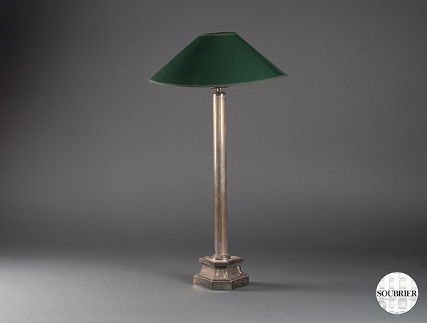 Large lamp in silver bronze, fluted resting on a base with canted decorated moldings , XIX .