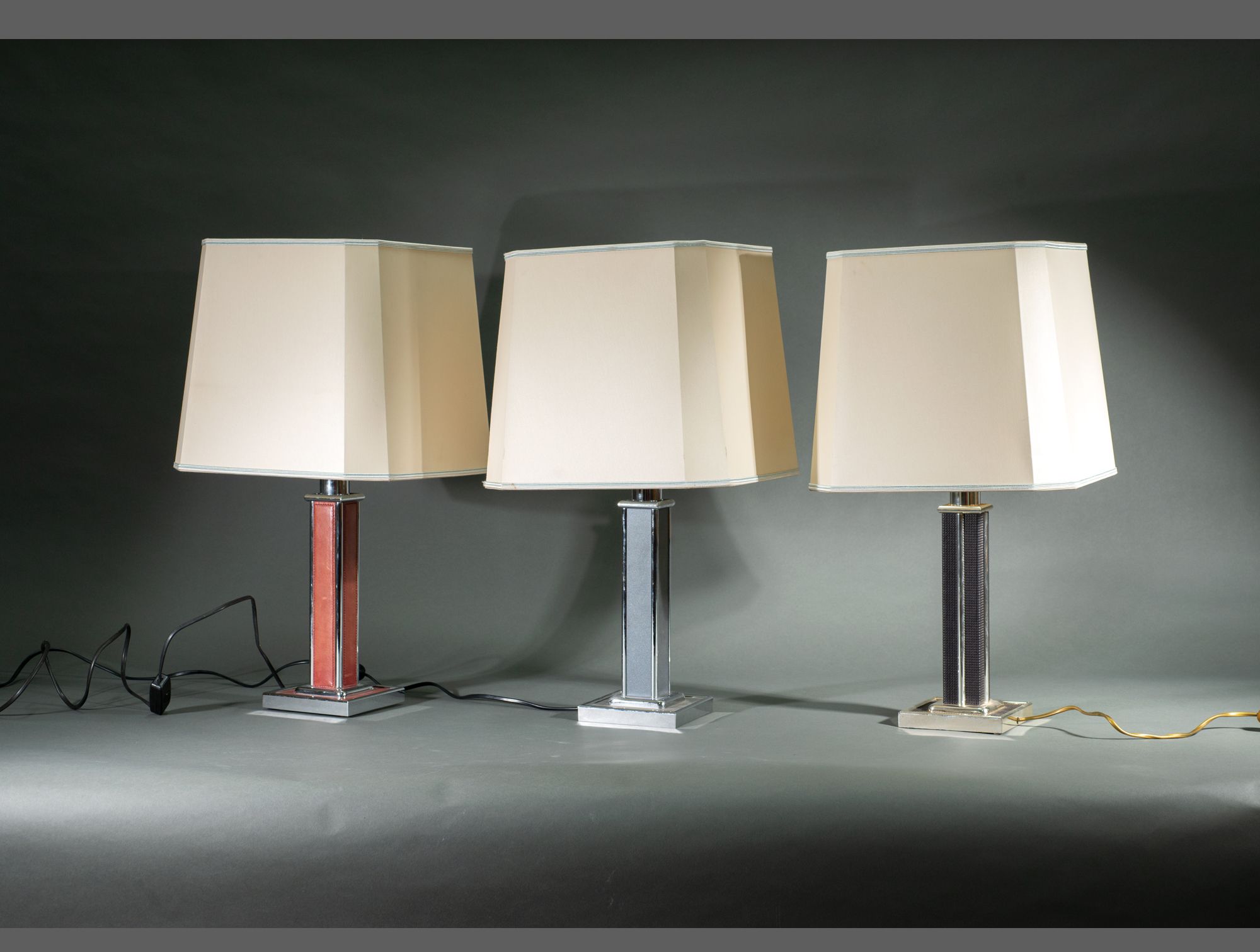 Lampe de bureau grise baguettes chromées