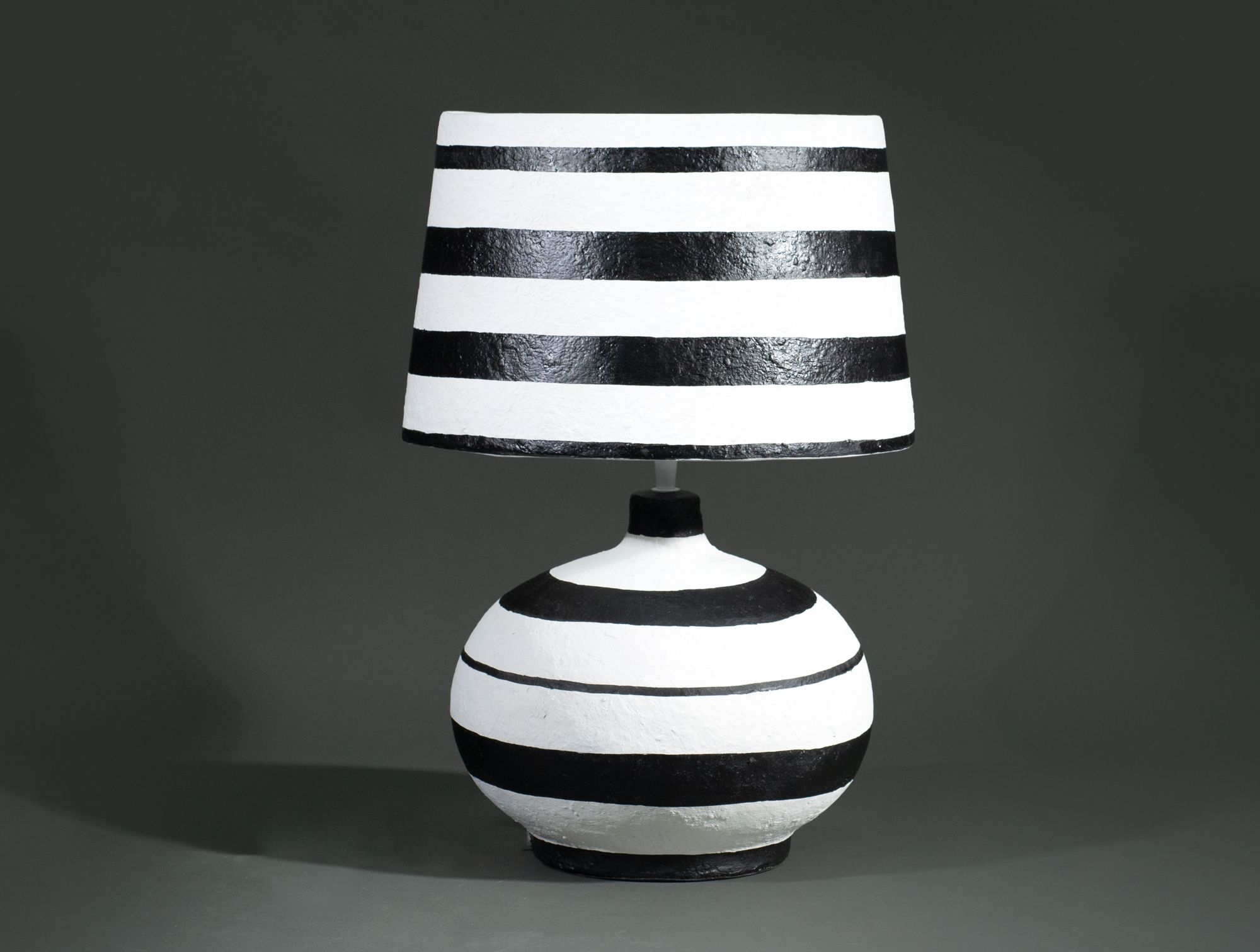 Grosse lampe en céramique plus abj rayures noirs
