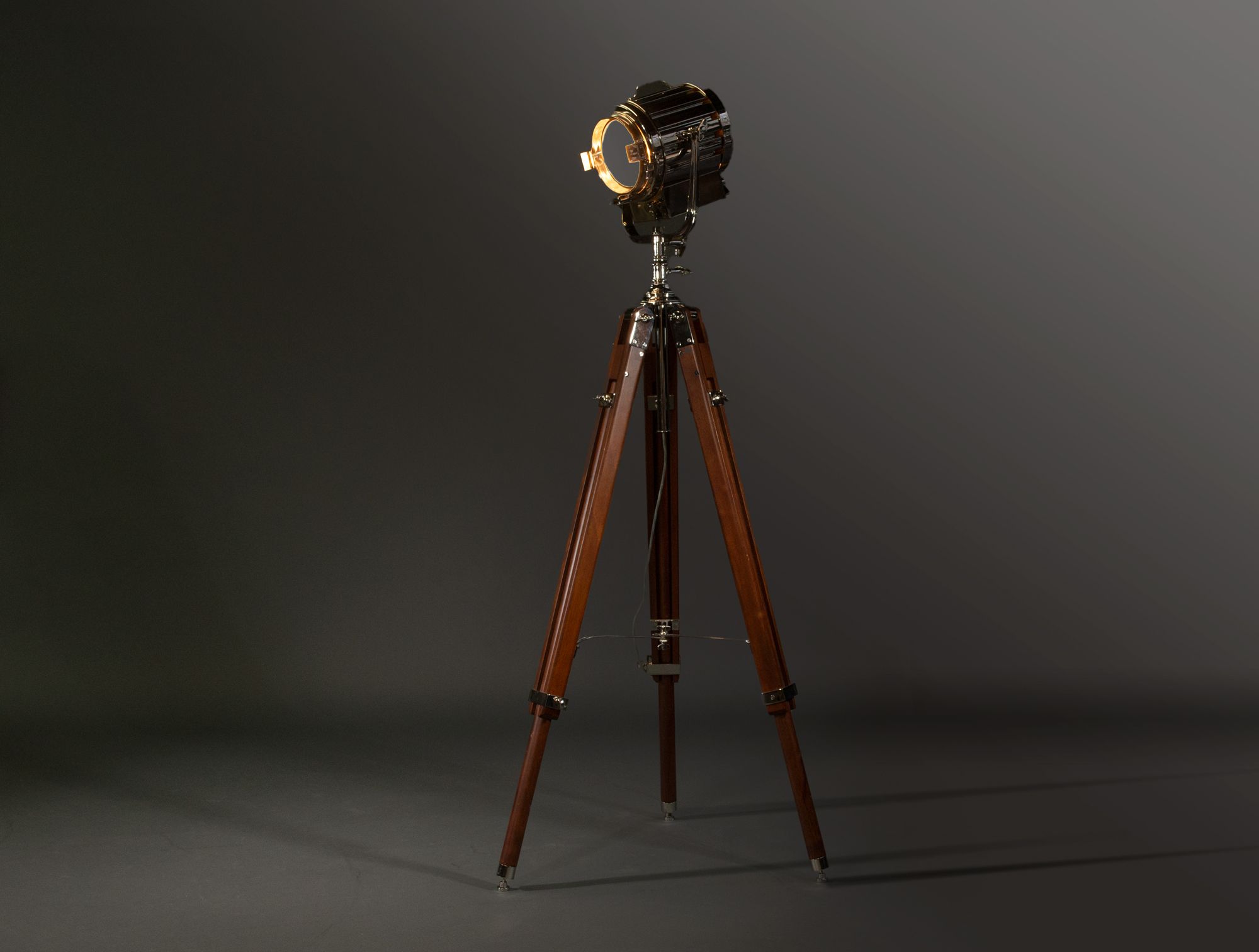 Lampadaire projecteur sur piètement bois tripode