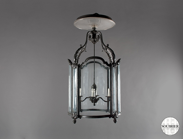 Large staircase lantern with black patina bronze , decorated with leaves and beads, Louis XVI, XVIII .