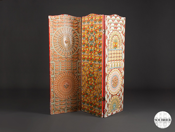 Three screen covered with a collage taste Russians two shades of red and yellow leaves, nineteenth