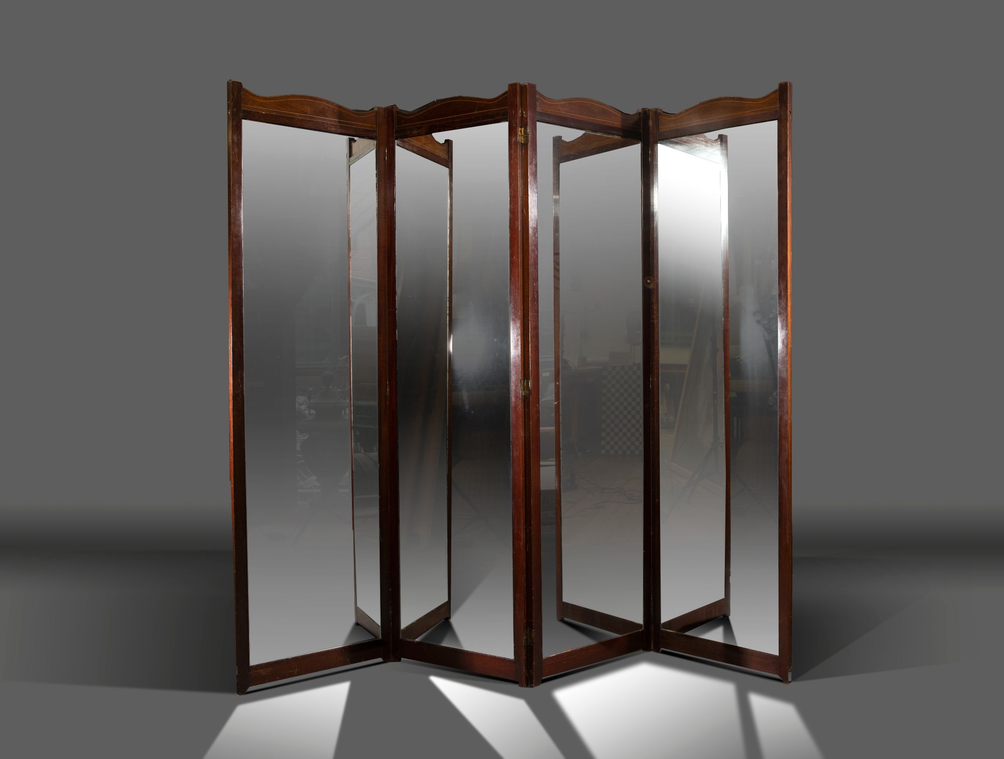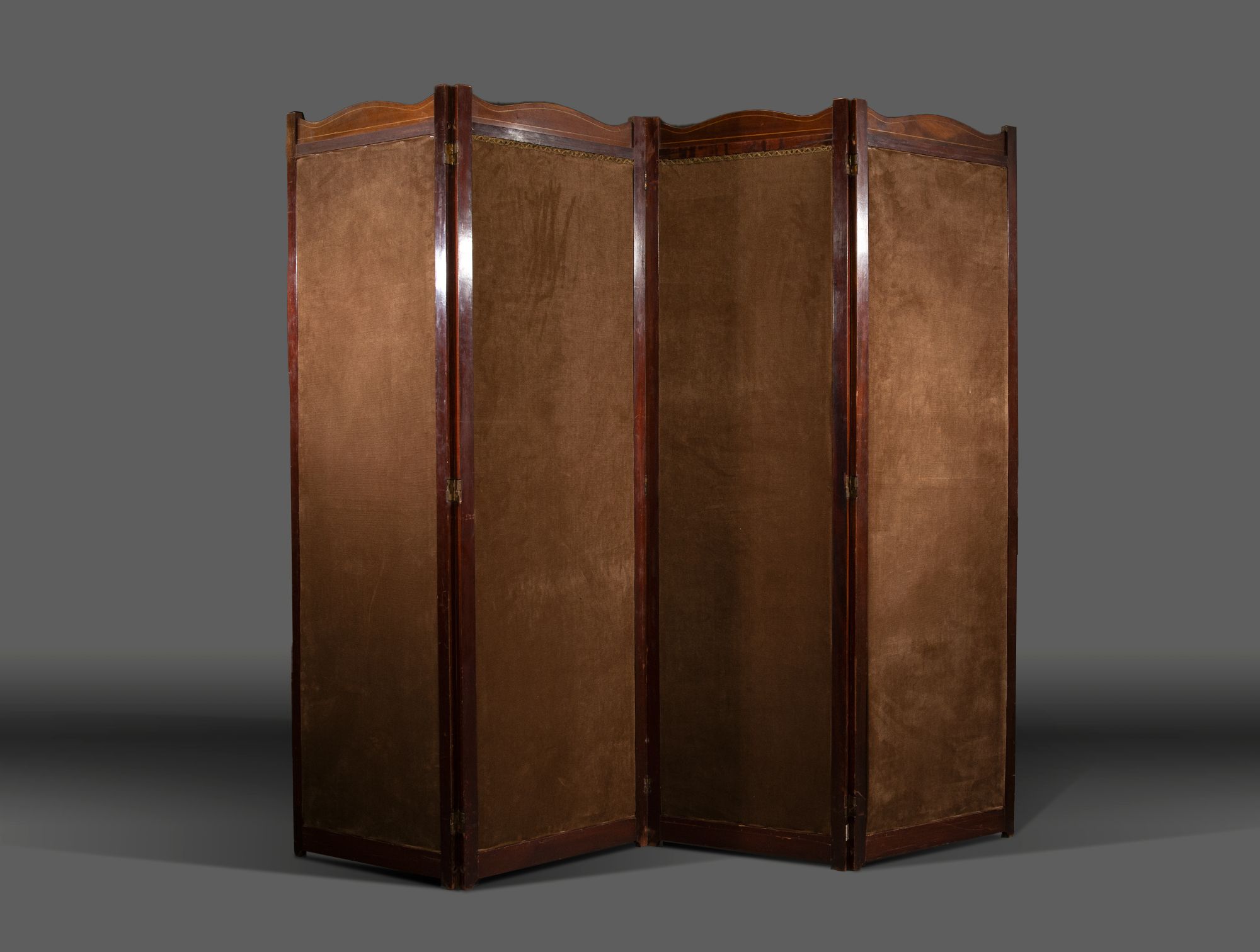 Brown velvet and mahogany and mirror four-leaf with a cross -motion, 20th century .
