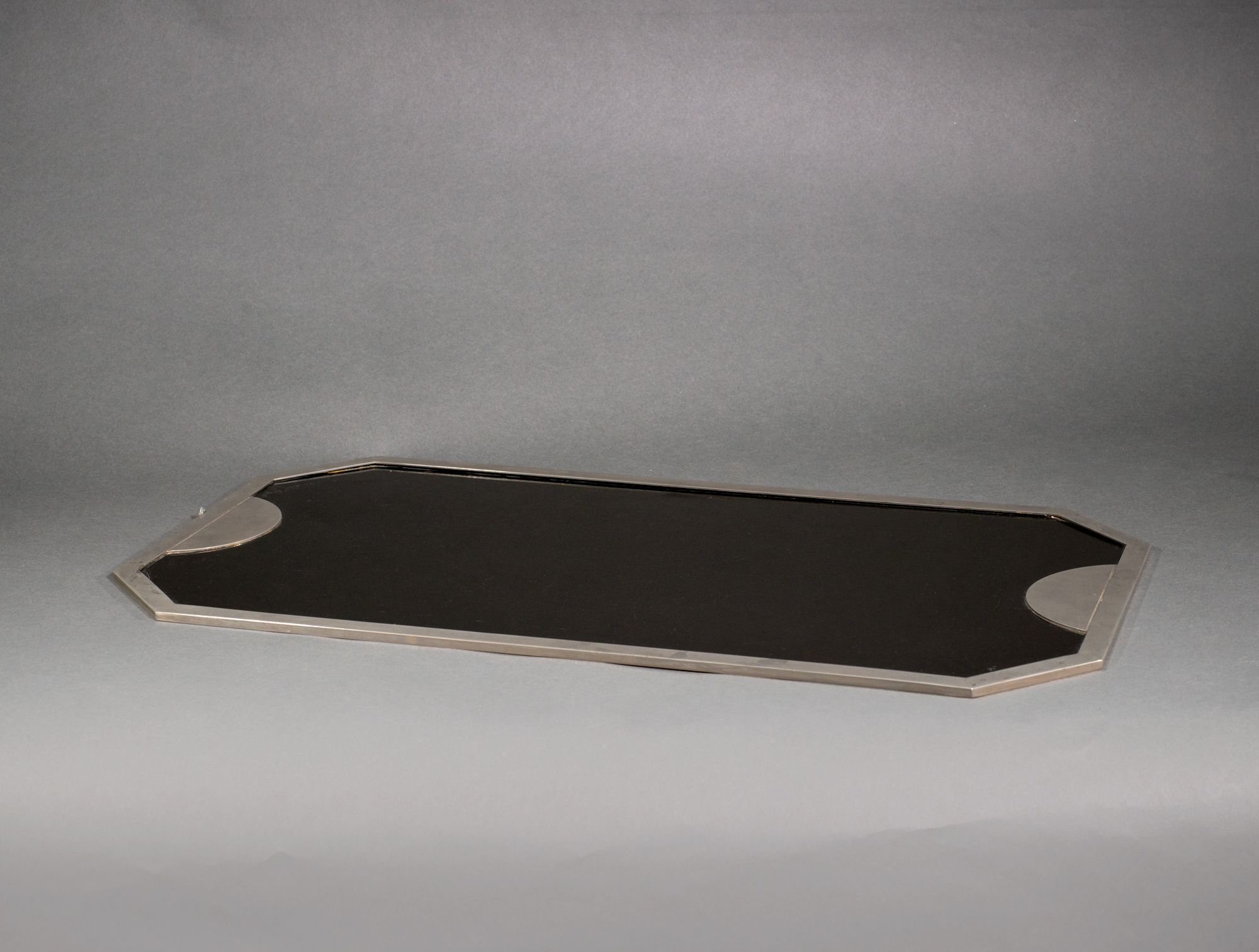 Plateau plexi fumé bord métal