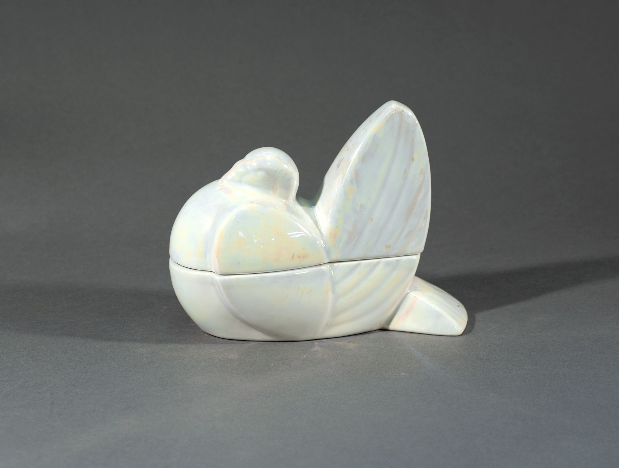 Pigeon faîence blanche nacré grand modèle + couvercle