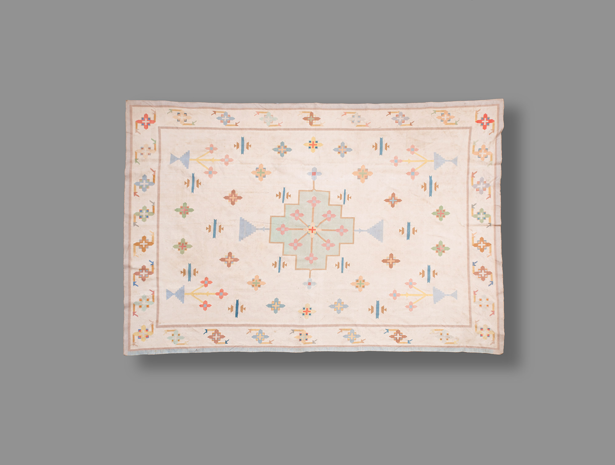 Durrie carpet with geometric polychrome decoration on a beige background , twentieth .
