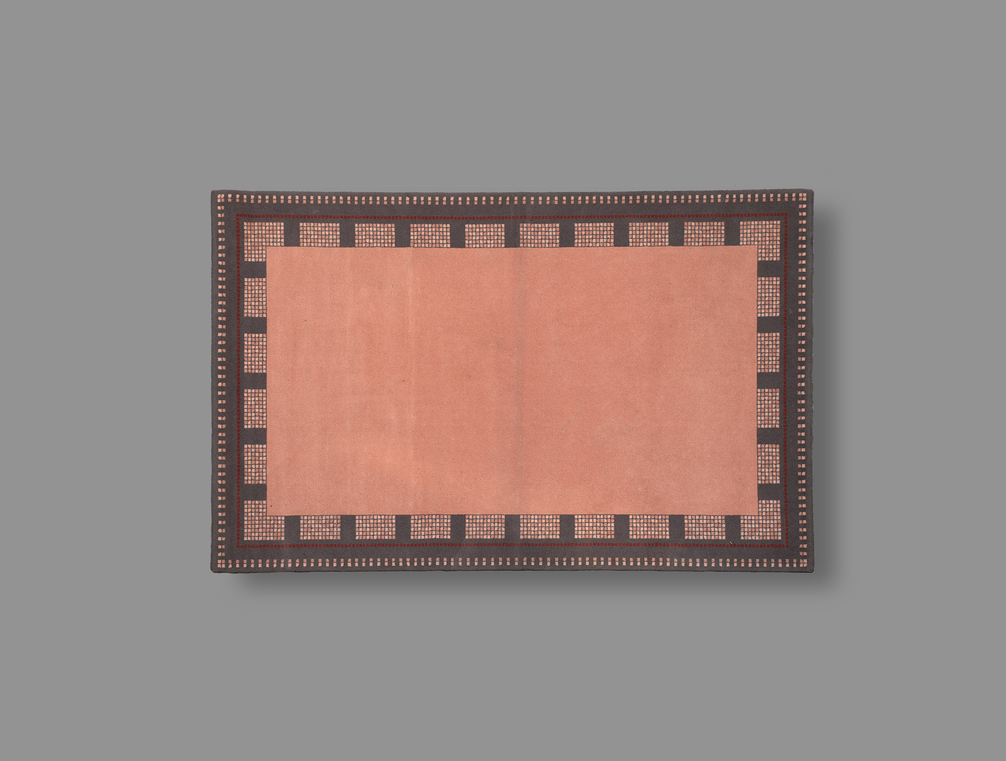 Modern rug with geometric decoration brown frieze pink background , twentieth .
