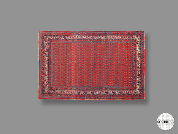 Oriental carpet with a red background and decor motifs cashmeres twentieth .
