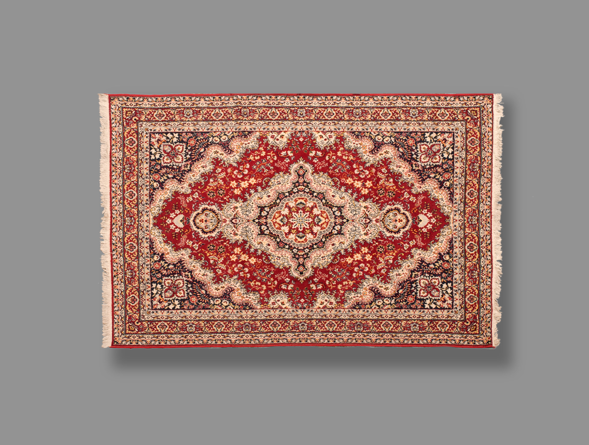Oriental rugs handmade , red background, decorated with flowers and arabesques, the twentieth .