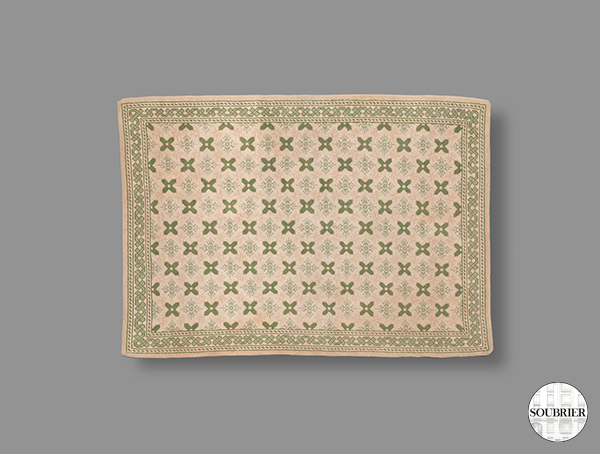 Carpet with geometric decoration green cross on a light background , c.