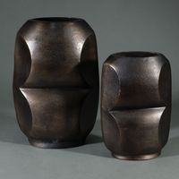 Brown patinated metal urns