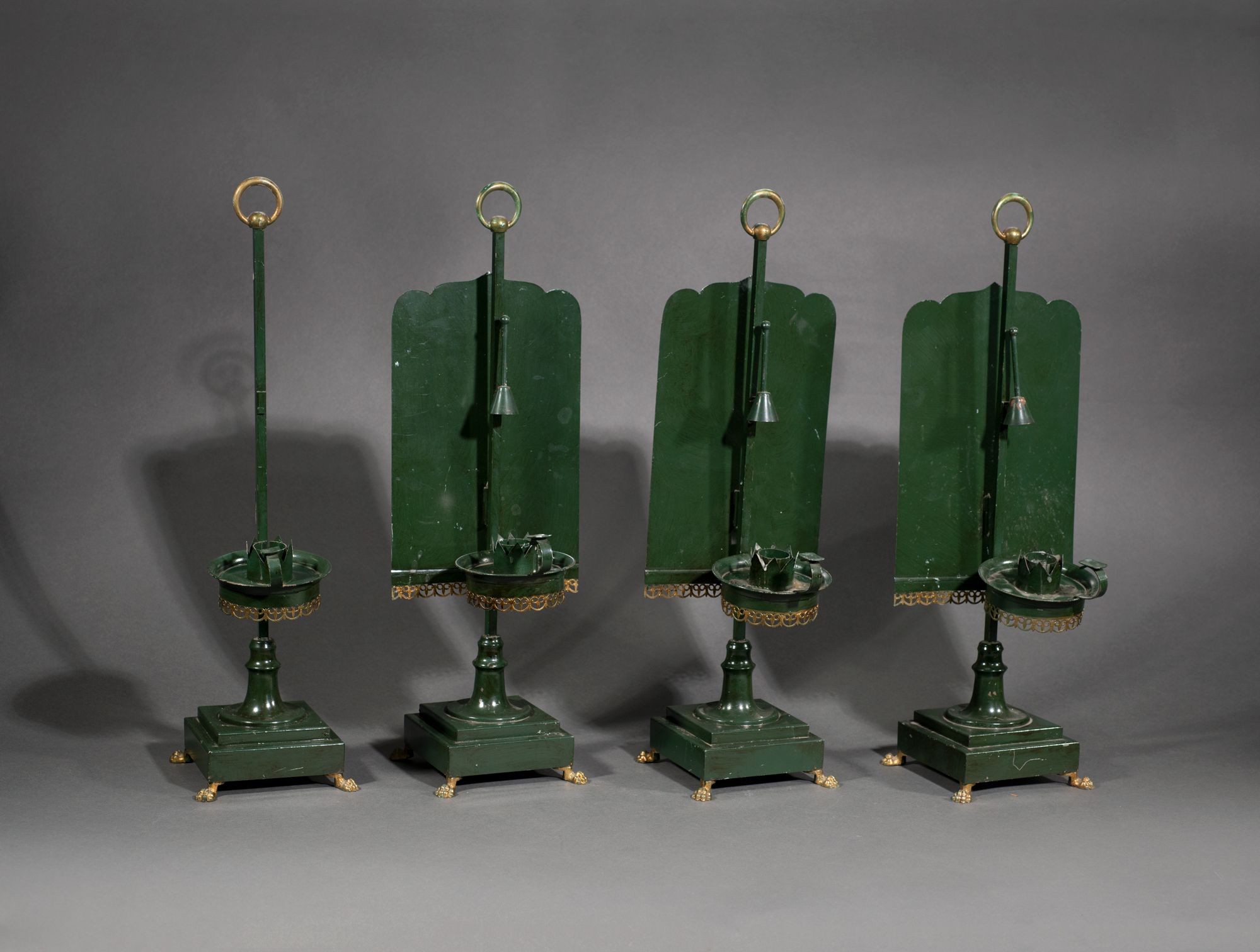 Chandelier tôle verte + verre + écran + mouchettes