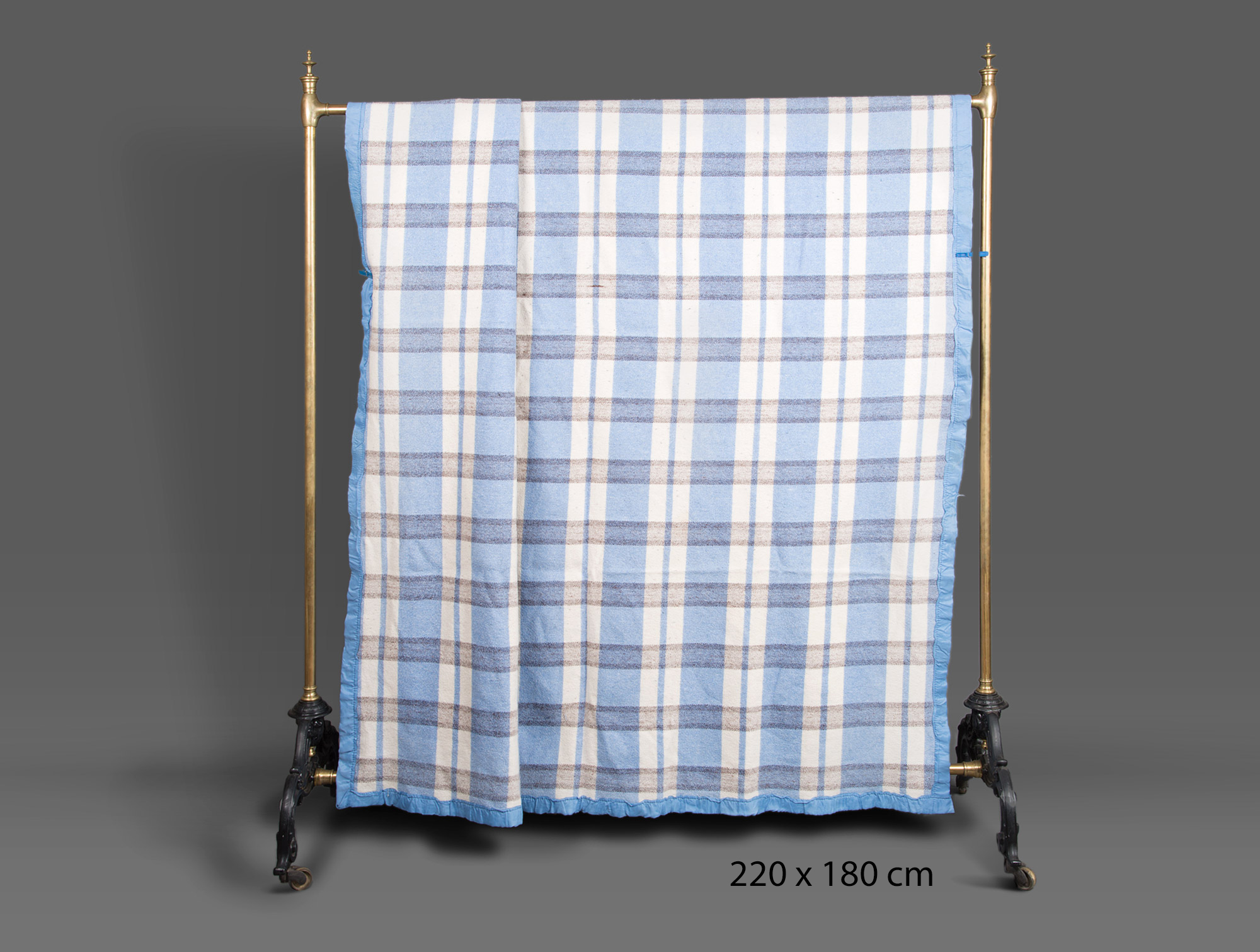 Couverture bleue à carreaux.