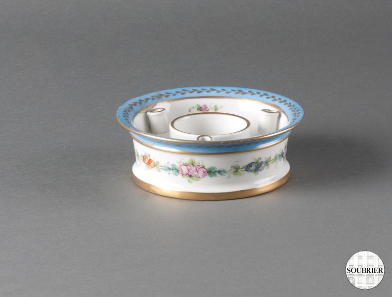 Encrier en porcelaine avec des décors floraux (3 pièces)