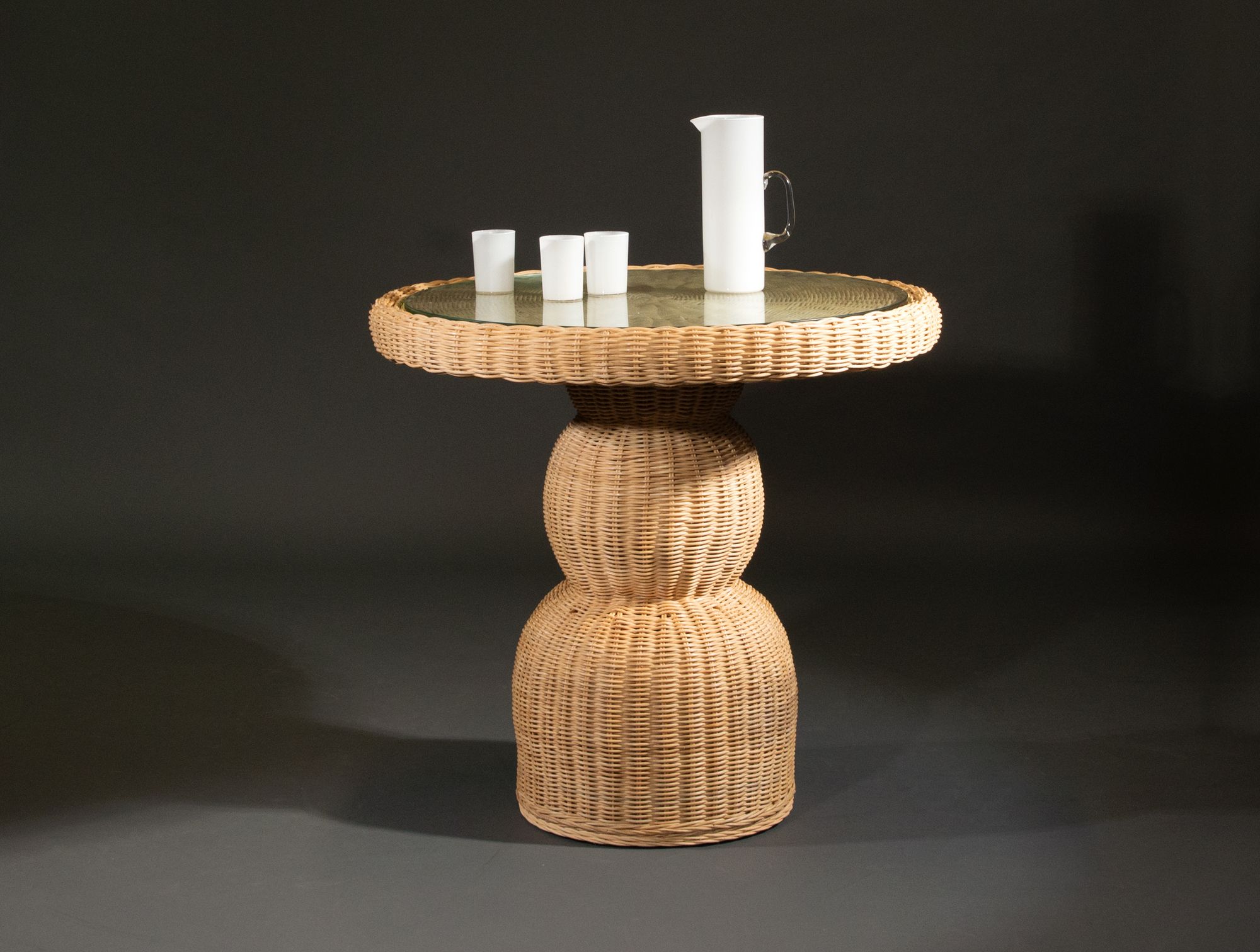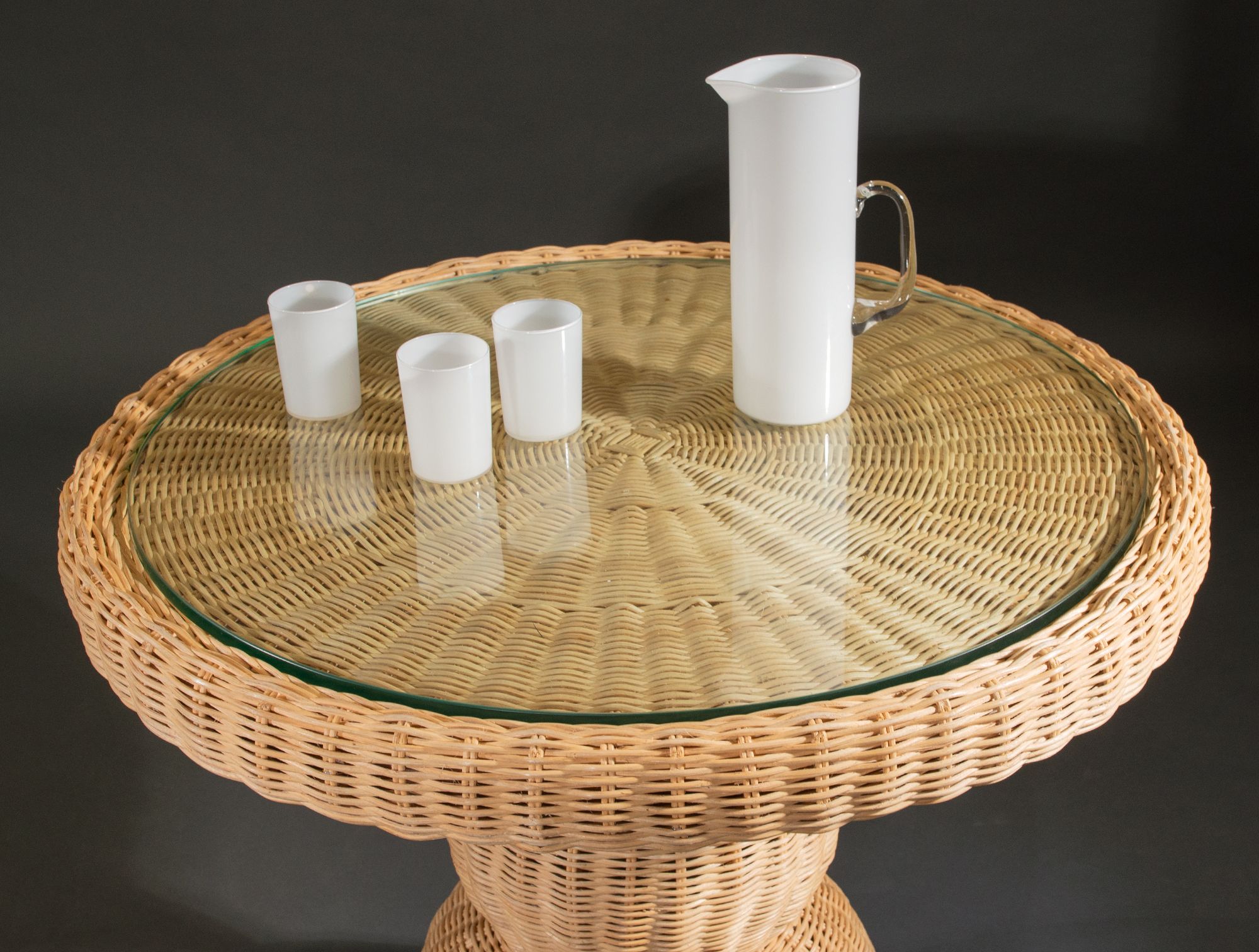Guéridon en rotin dessus verre
