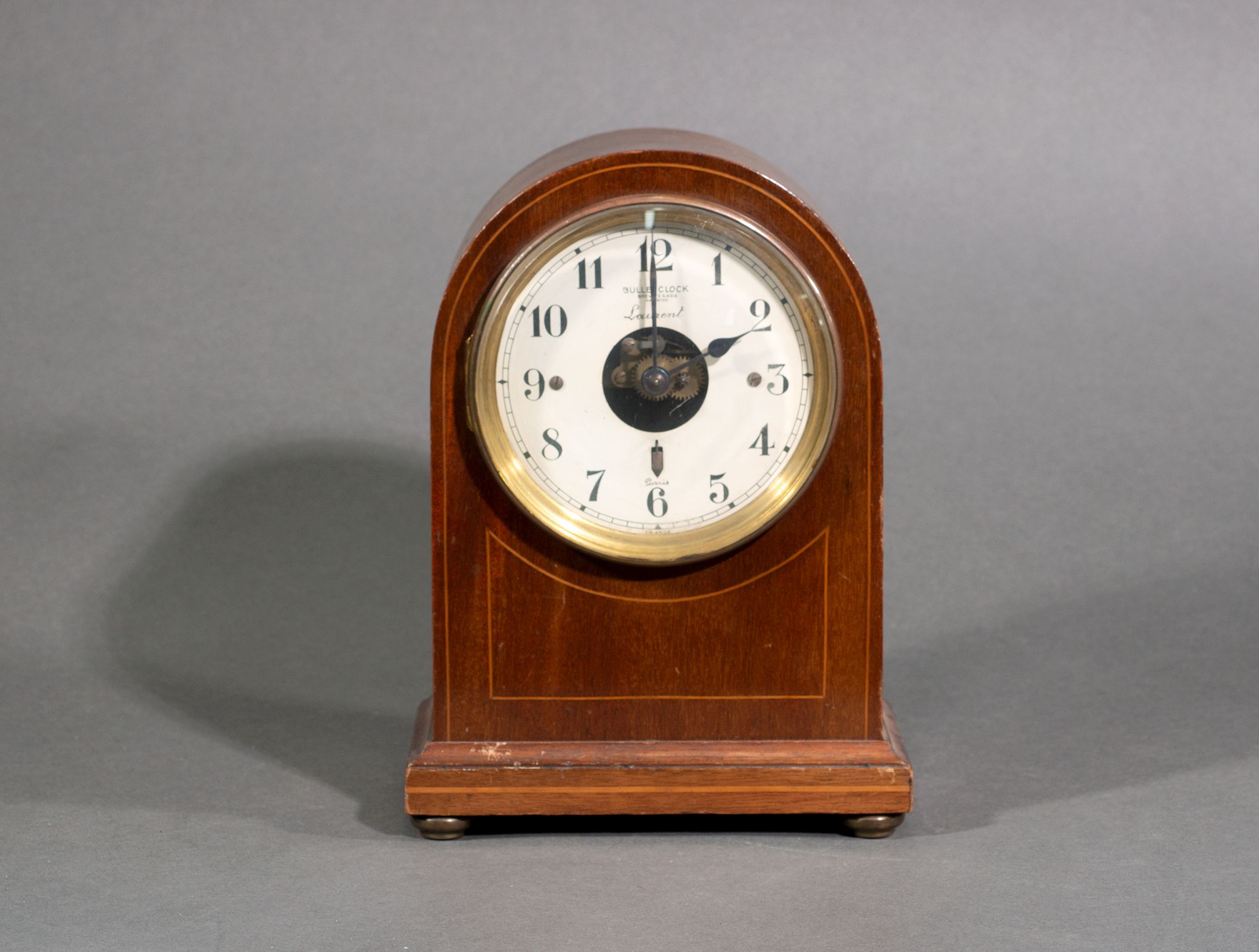 pendule anglaise en acajou "borne" avec cadran en cuivre.
