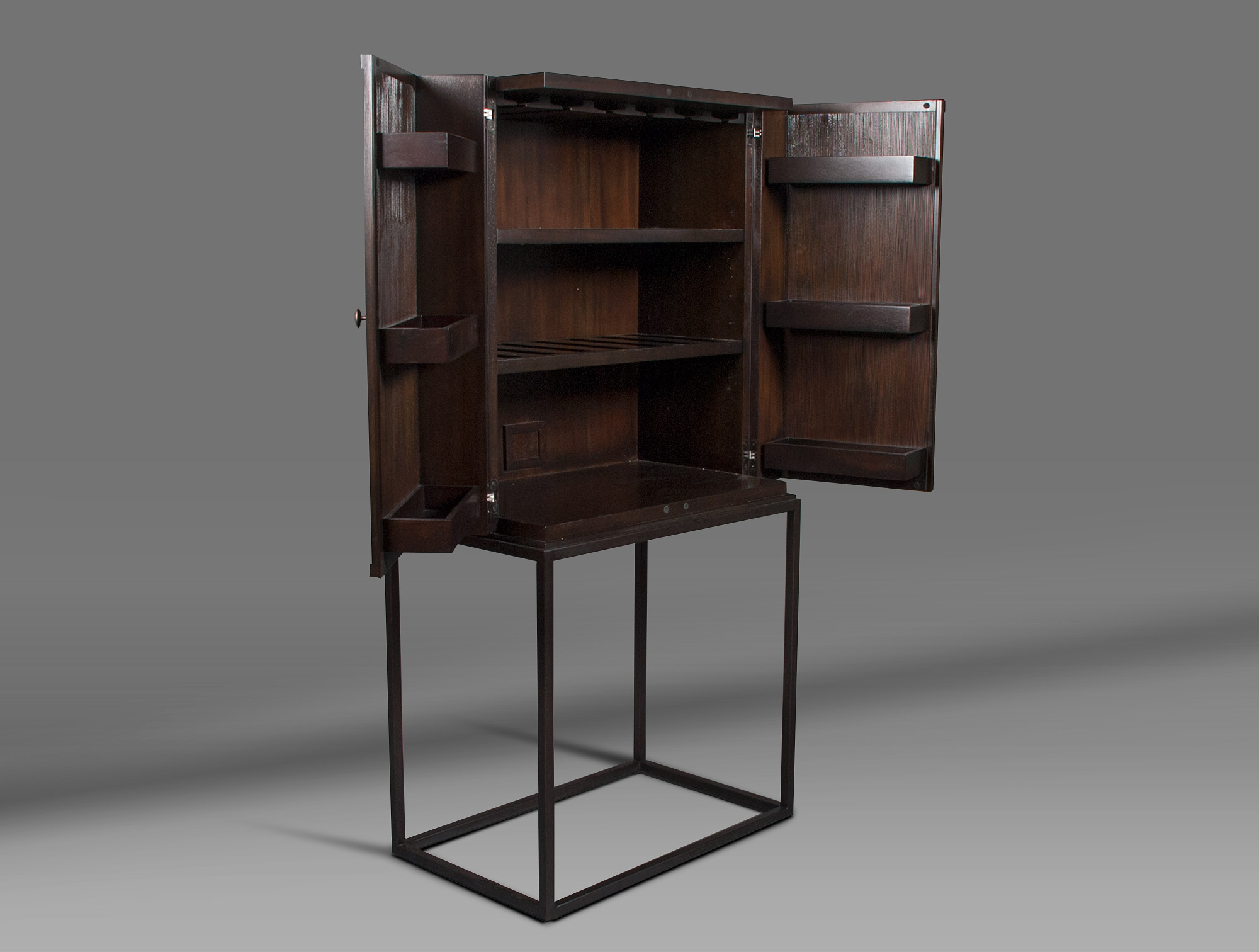 Paire de cabinets modernes à deux portes dissimulant un bar.