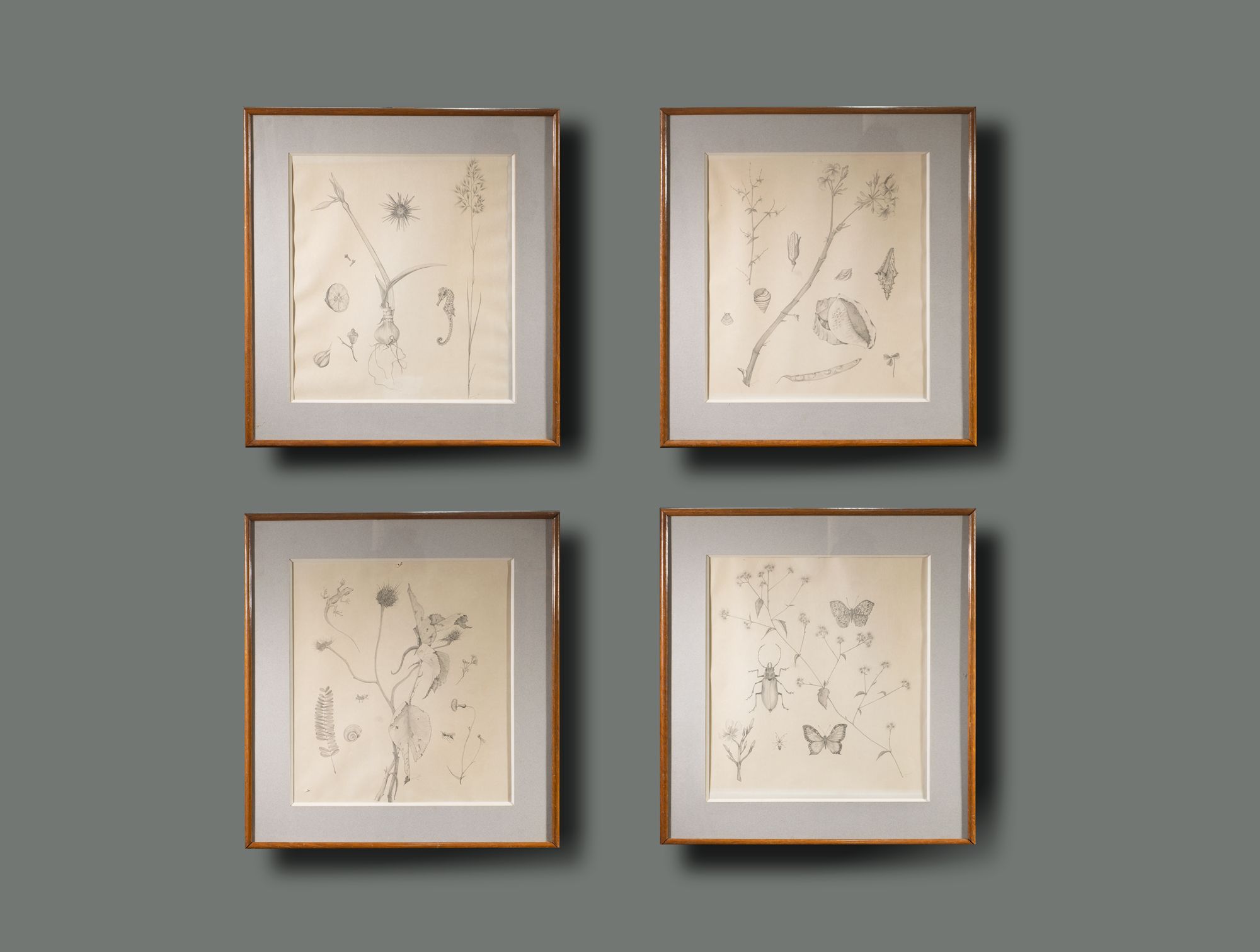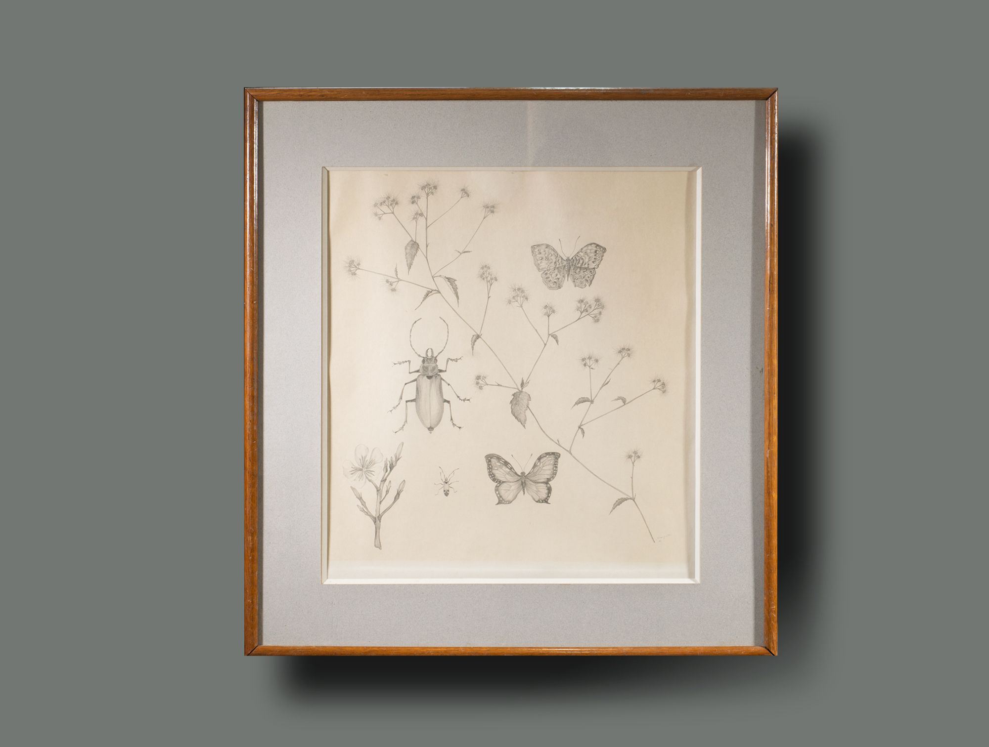 Dessin botanique scarabé et papillon