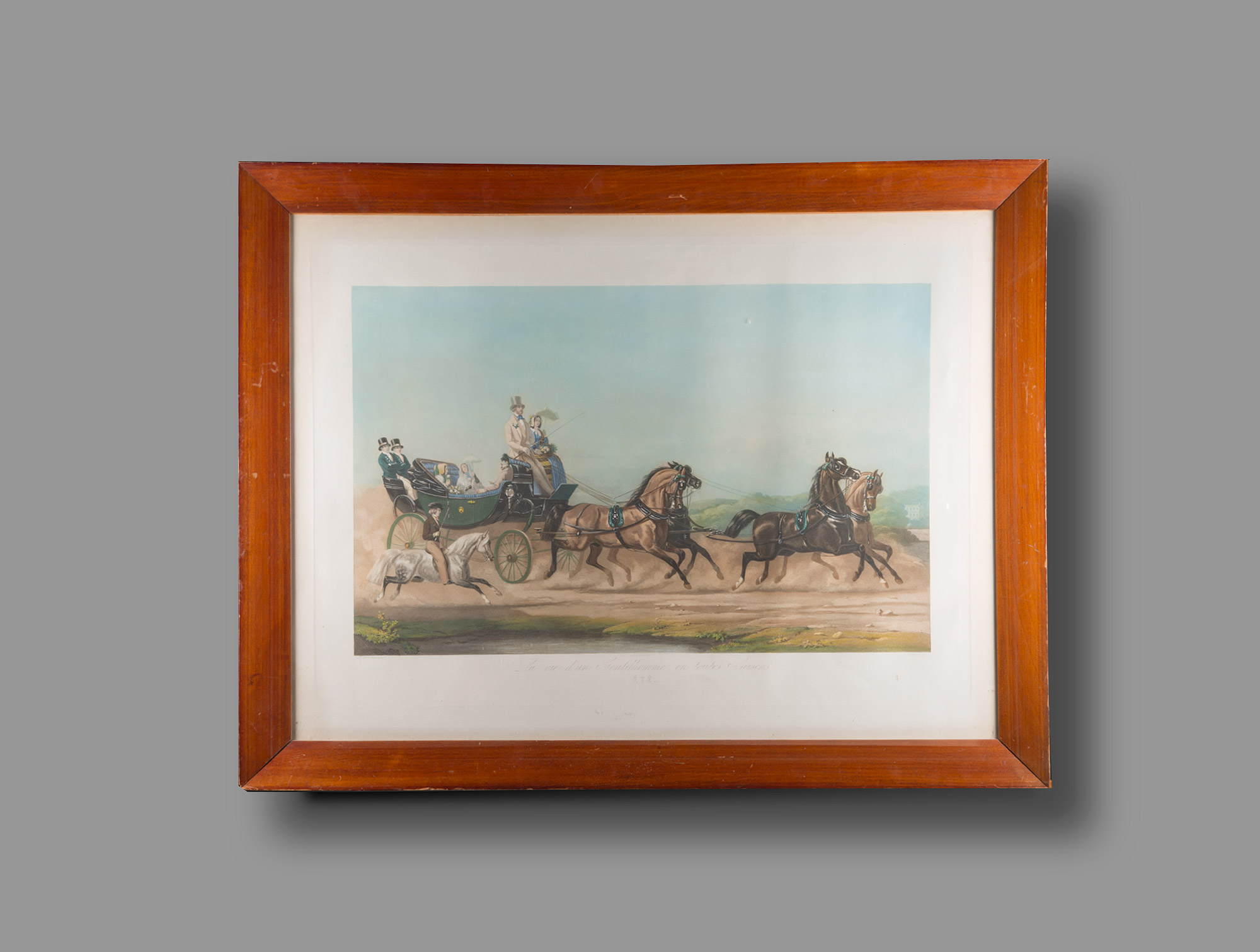 Paire de gravures "La vie d'un gentilhomme en hiver" et "La vie d'un gentilhomme en été" cadre acajou.