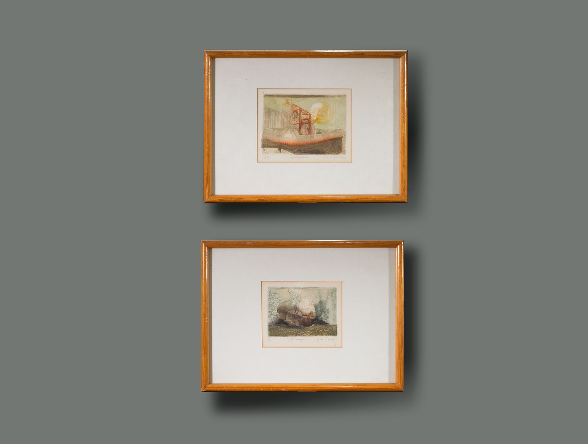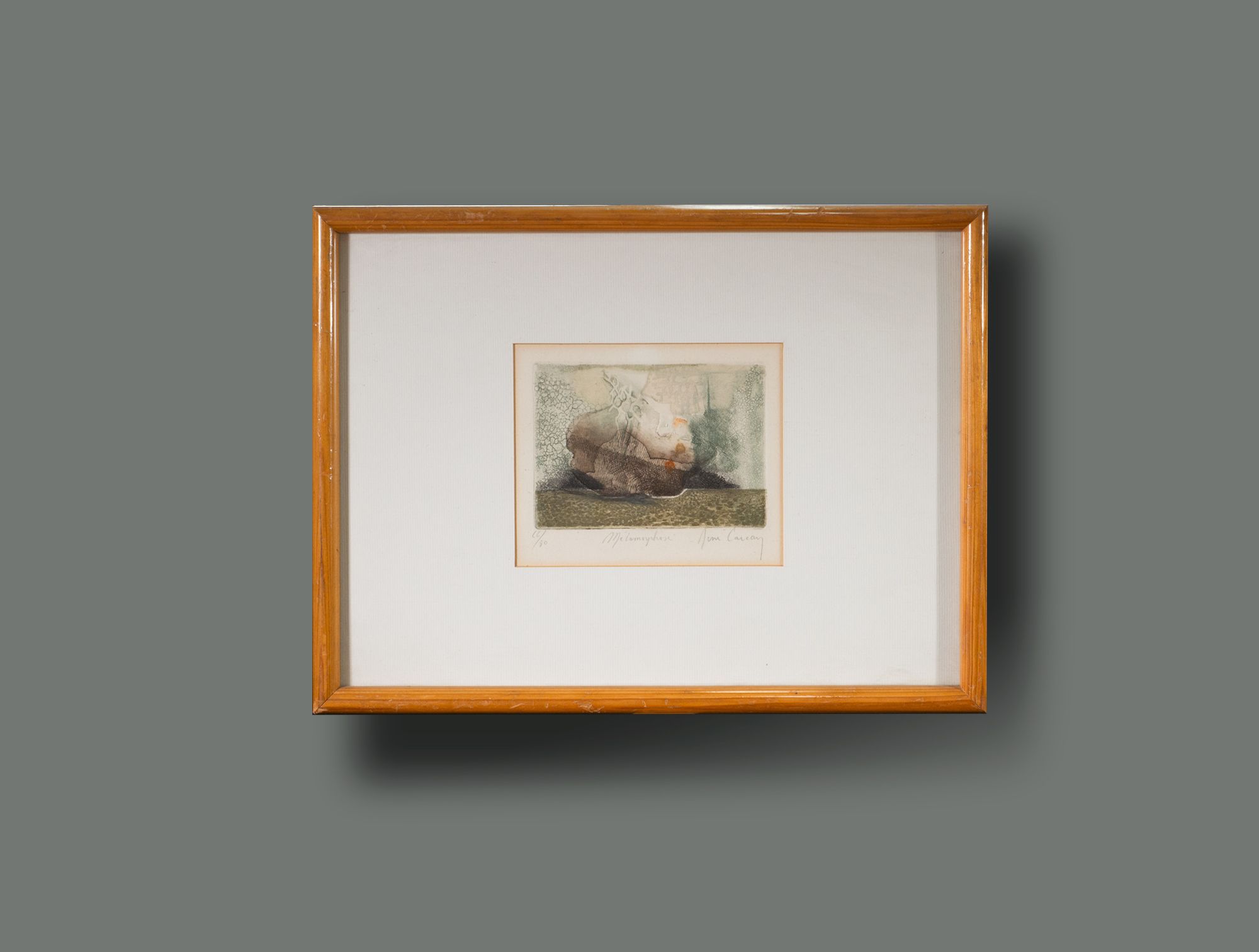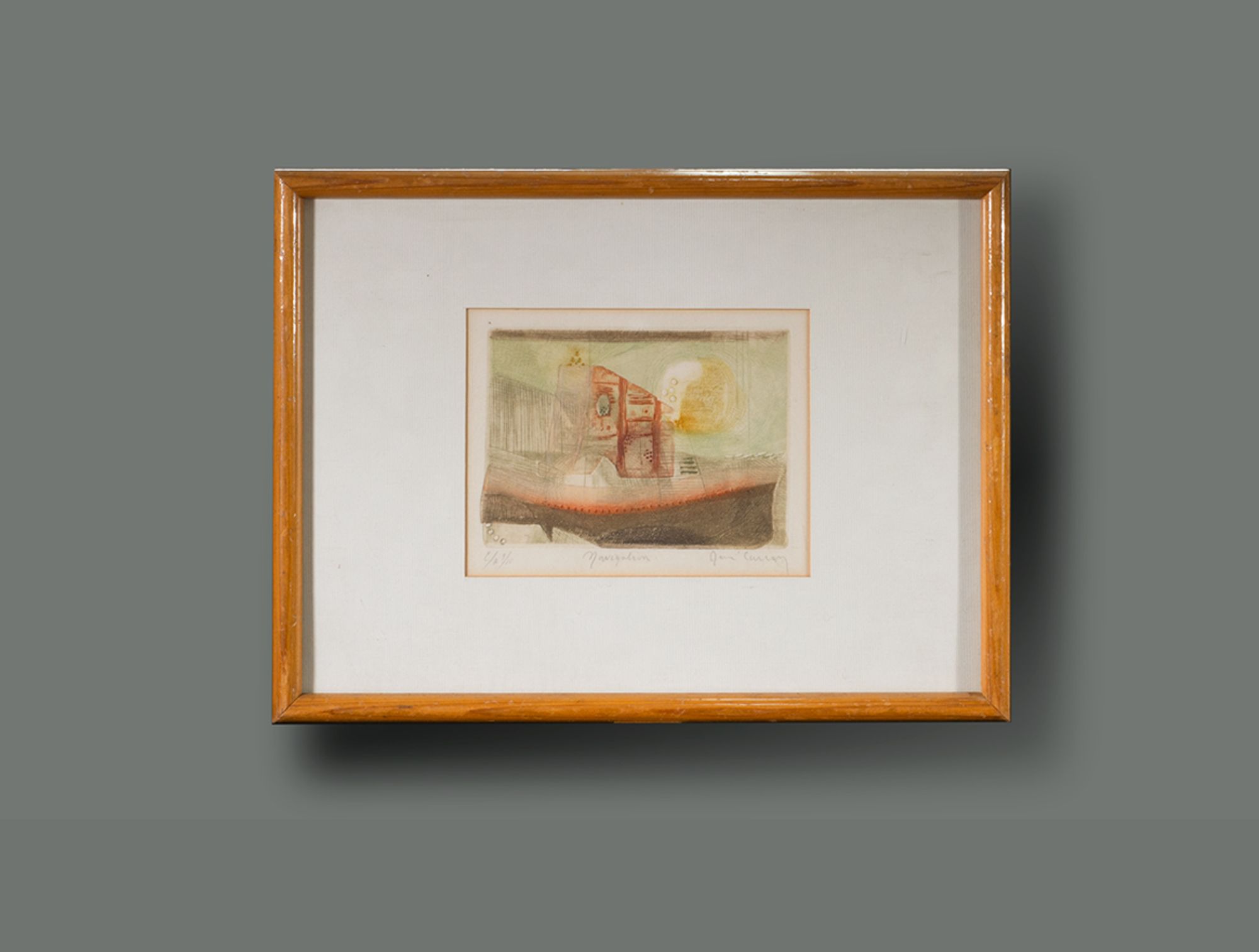 Petite gravure abstraite cadre bois