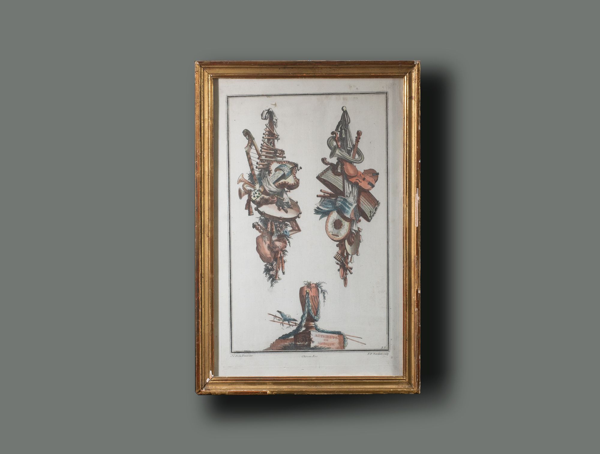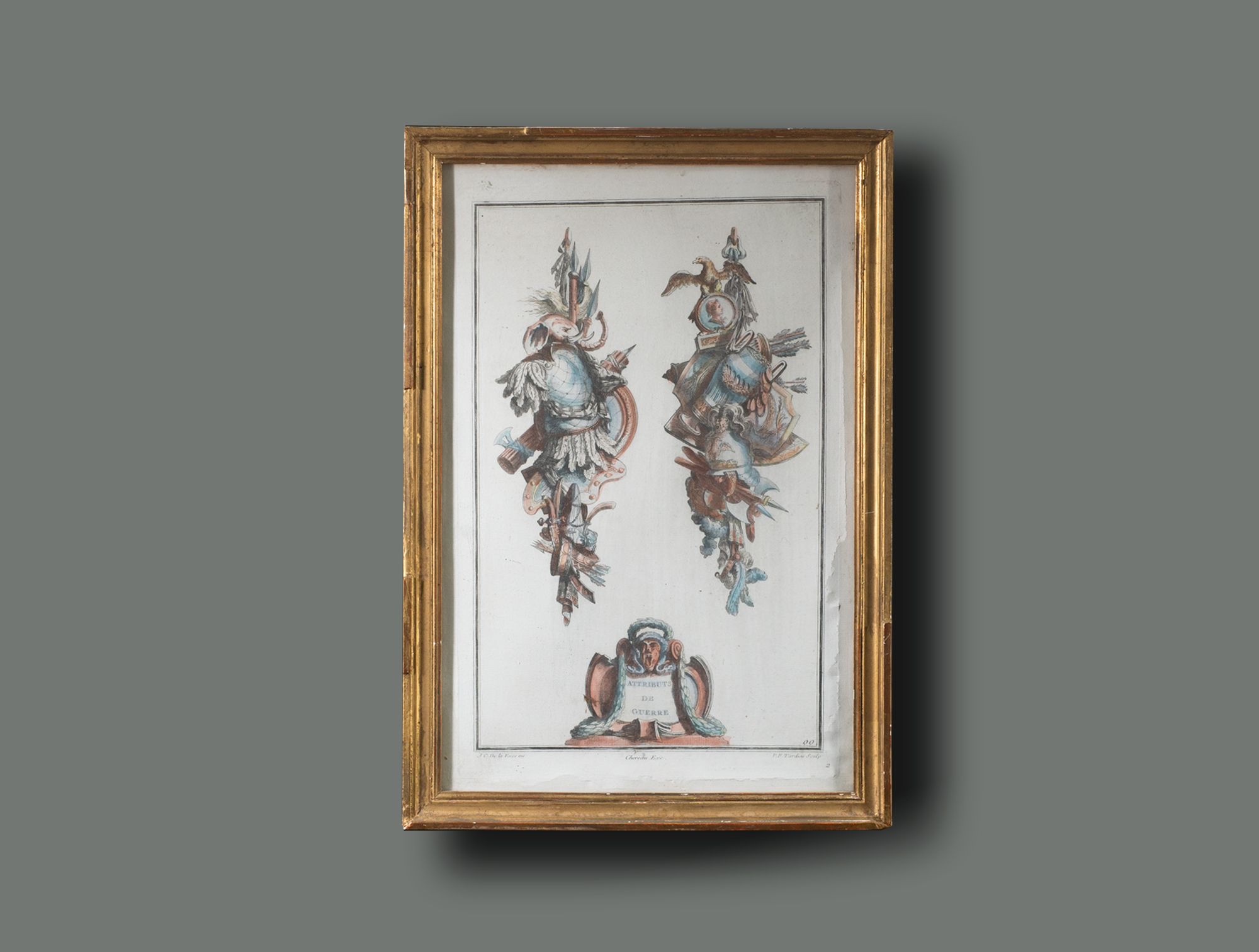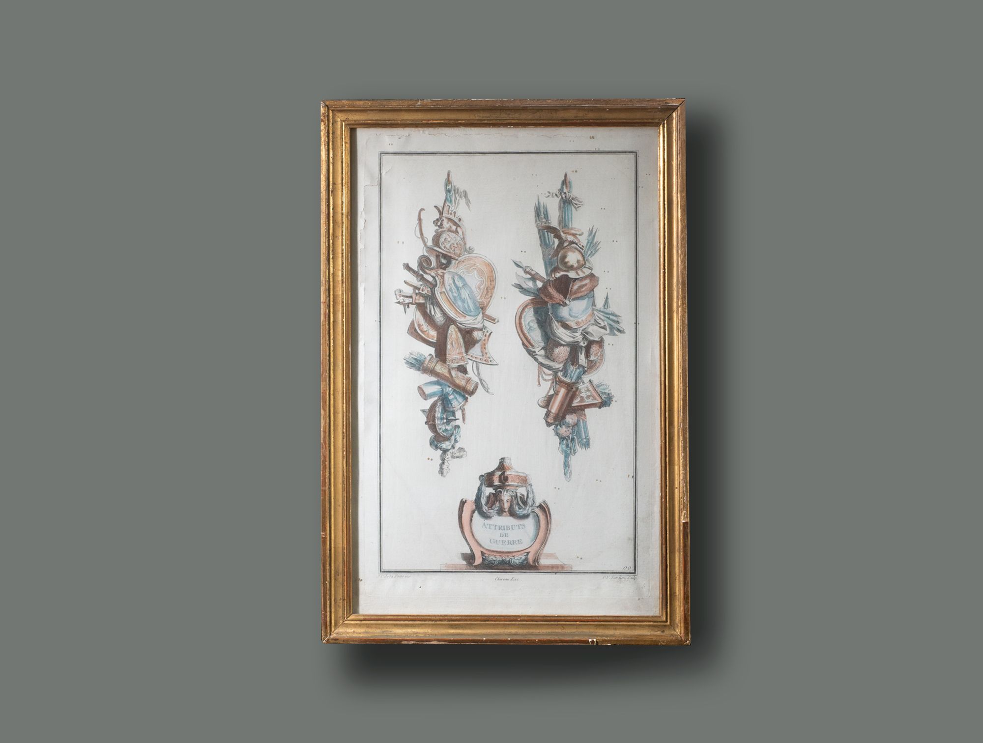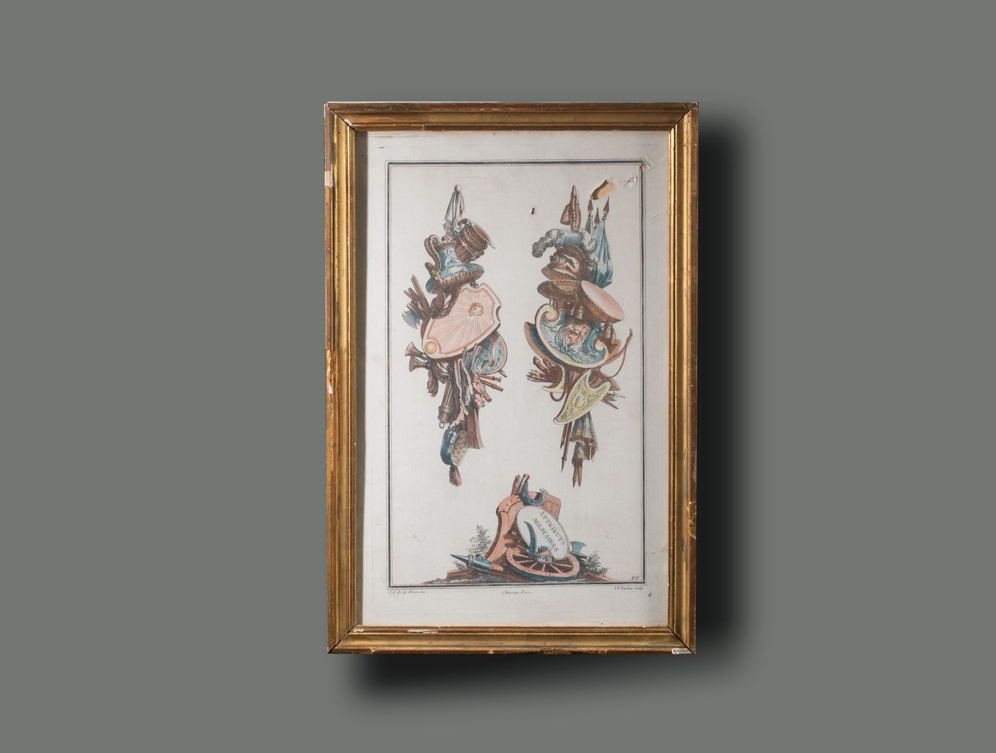 Gravure trophée cadre doré