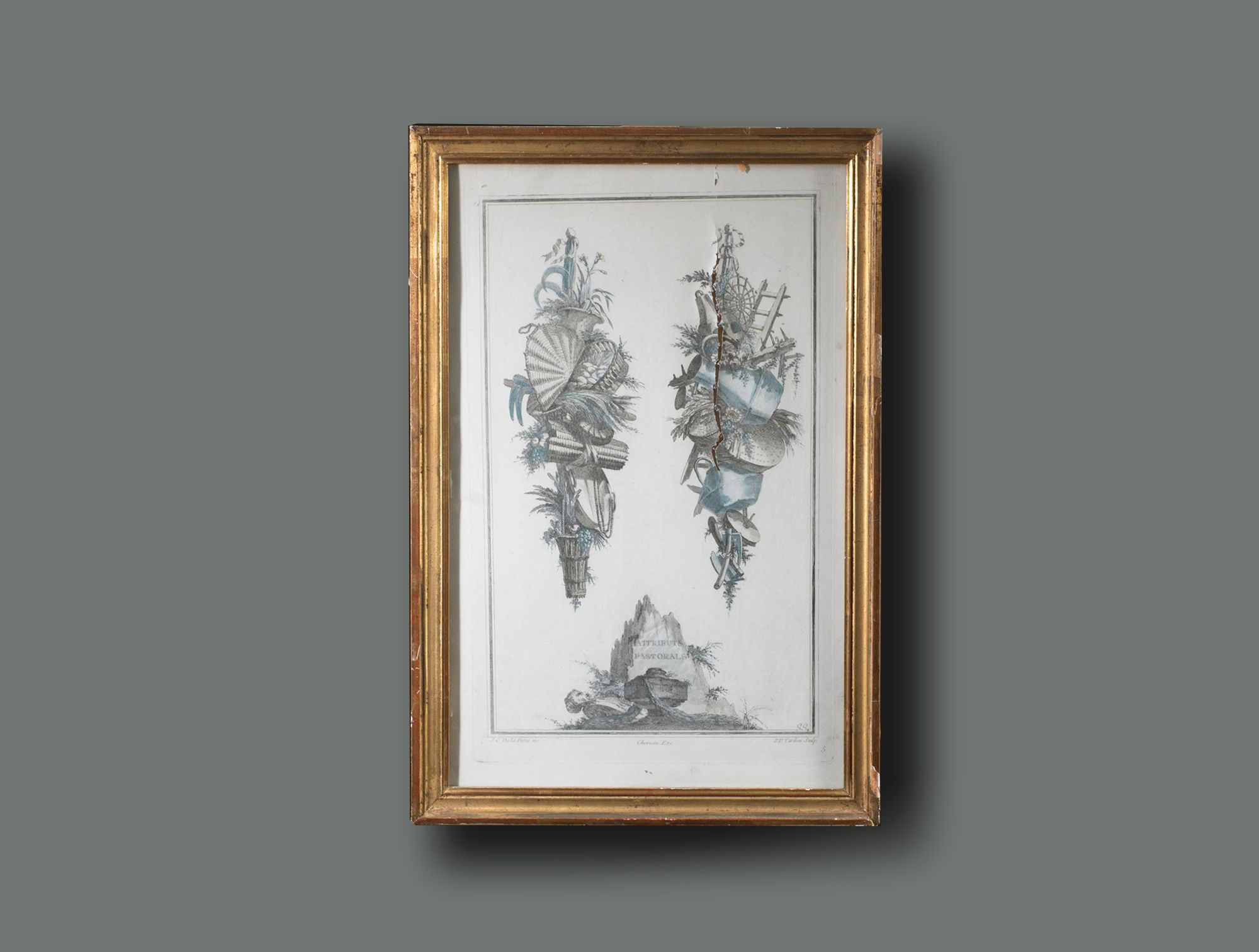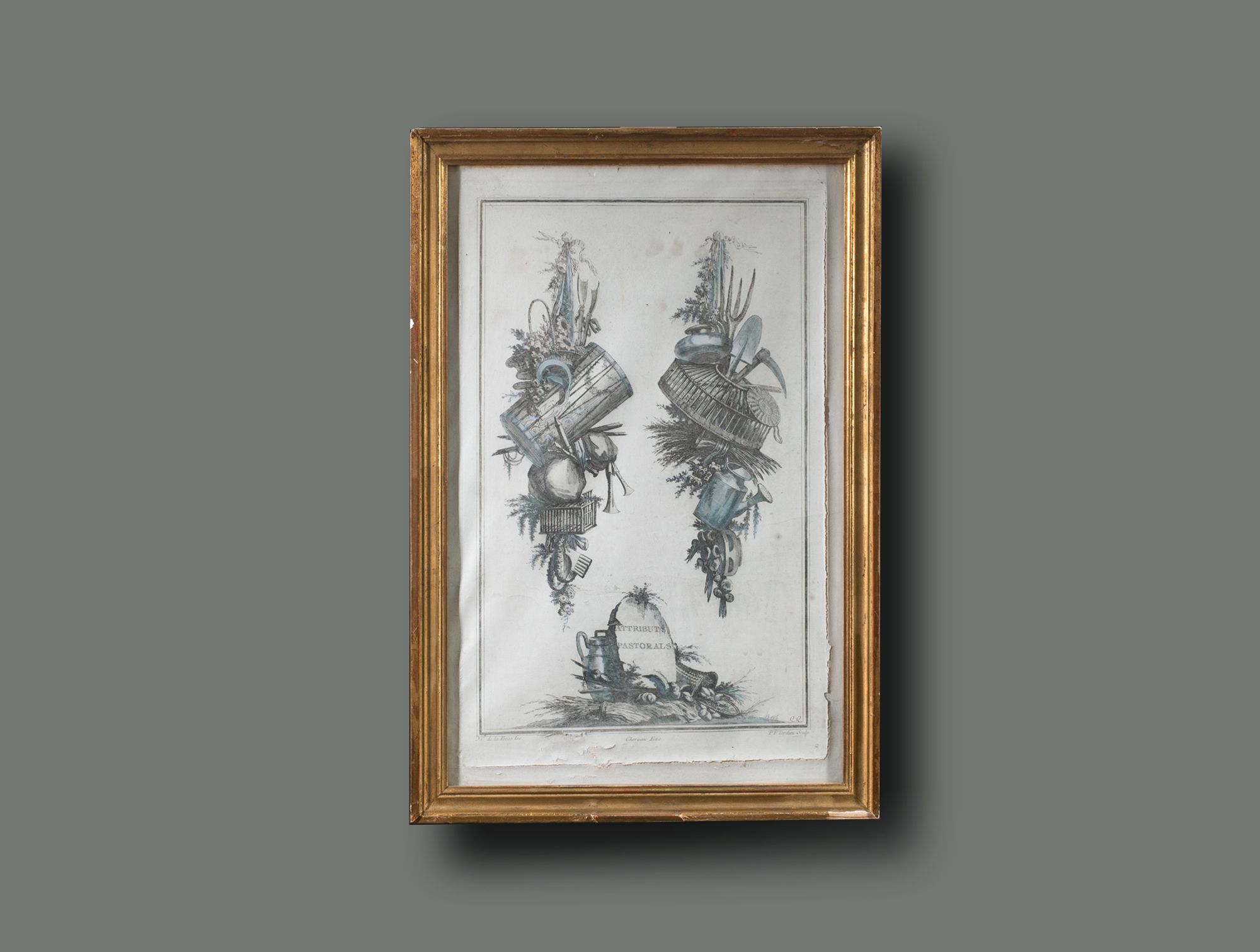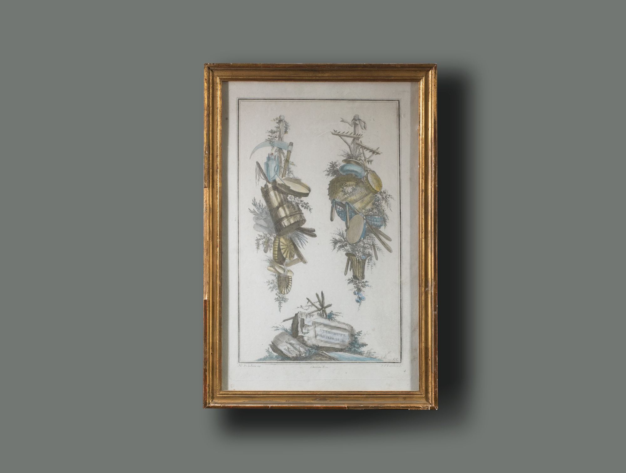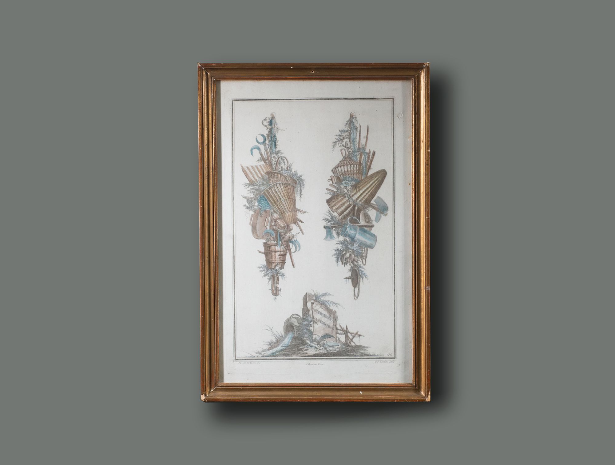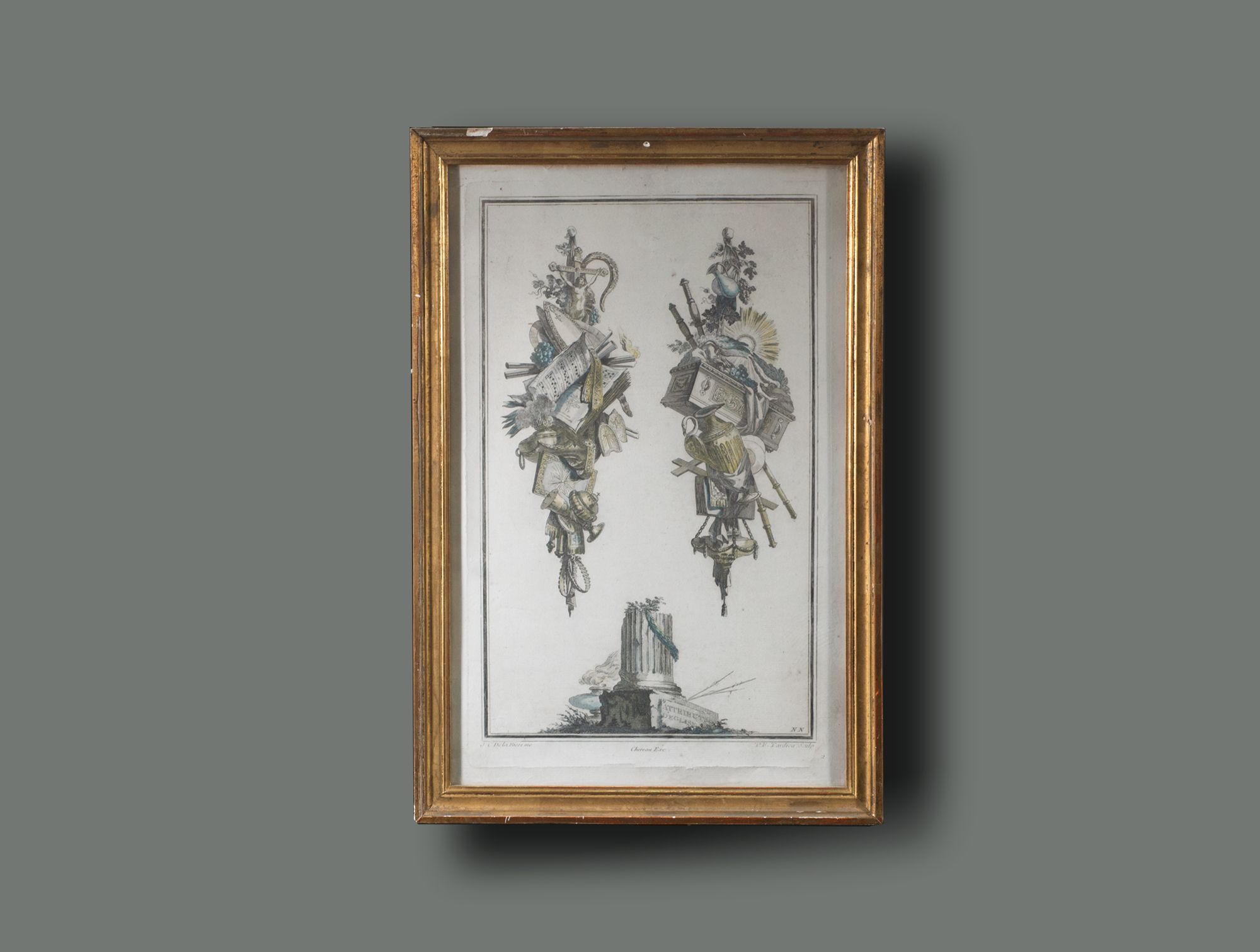 Gravure trophée cadre doré